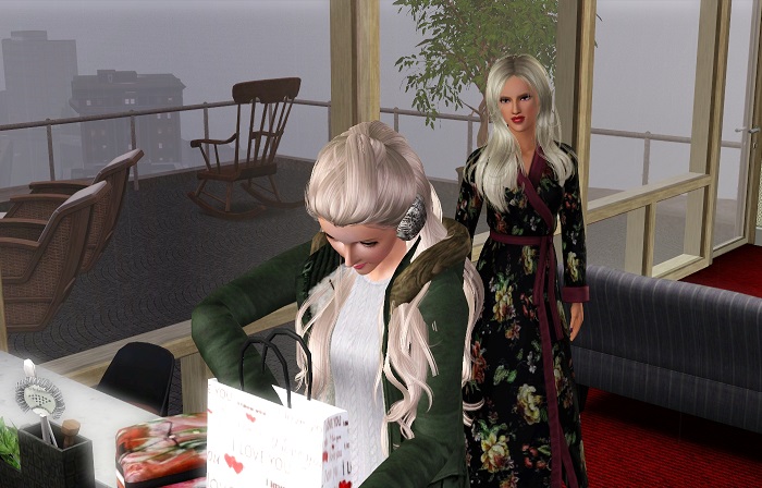 そうそう、アイビーは前回訪問したときに「バスローブだと寒そう」とか考えていたので、外出できないミランダを思ってマタニティードレスを買ってきたみたいなんですが、おせっかいすぎたようですね~。